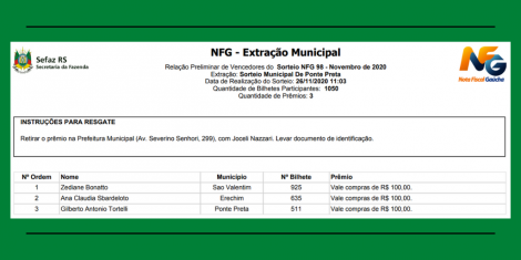 Confira os ganhadores da NOTA FISCAL GAÚCHA do mês de OUTUBRO