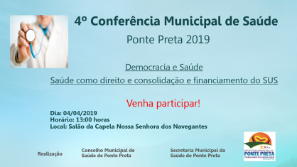 Venha Participar da 4º Conferência Municipal de Saúde.