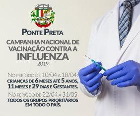 — No período de 10/04 a 18/04: vacinação contra a influenza, em todo país, de crianças de 6 meses até 5 anos, 11 meses e 29 dias e Gestantes.