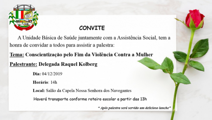 A Unidade Básica de Saúde juntamente com a Assistência Social, tem a honra de convidar a todos para assistir a palestra: