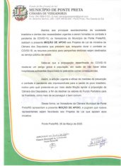 MOÇÃO DE APOIO Nº001/2020, DE 26 DE MARÇO DE 2020