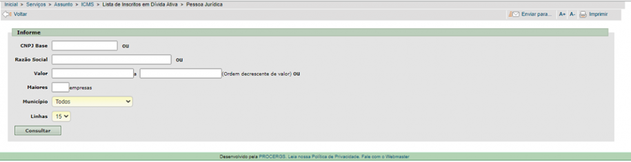 A consulta está disponível em ambiente seguro pelo link https://receita.fazenda.rs.gov.br/lista/3973/lista-de-inscritos-em-divida-ativa-ref