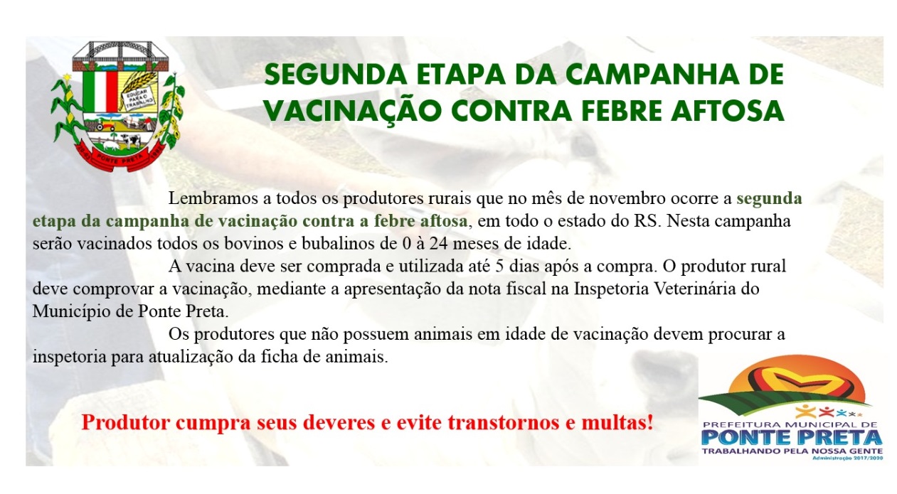 SEGUNDA ETAPA DA CAMPANHA DE VACINAÇÃO CONTRA FEBRE AFTOSA